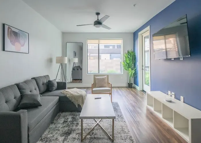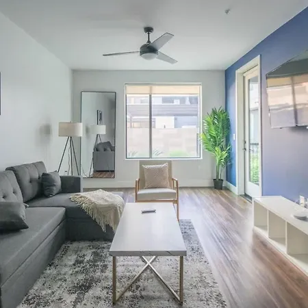 A full kitchen at the apartment features oven and a dishwasher. Modern 1Bd - Pool, Gym, Parking, W-D - Sleeps 4 Apartment is approximately 5 minutes by foot from Rio Salado Pkwy & Hardy Dr bus stop. Guests will find a fitness room at their disposal, enabling them to stay in shape.